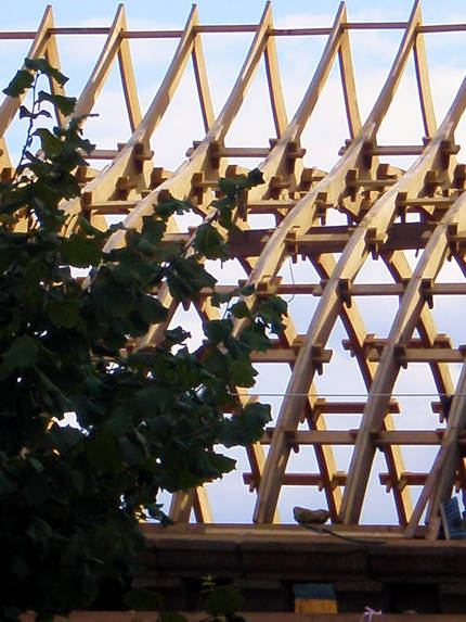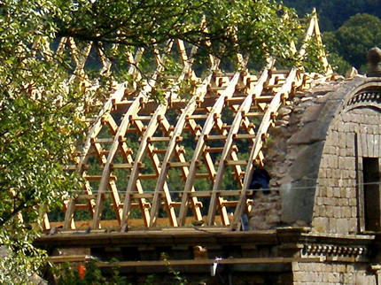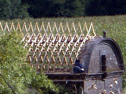 In August 2010 Damien Gallais began the massive task of putting a new roof on La Portail, the old gatehouse of Courceriers chateau. The structure is surely a thing of great beauty. The photos were taken by Jean le Guiffant in September 2010 and the last two of the finished roof by Brian Le Cornu in May 2011. |