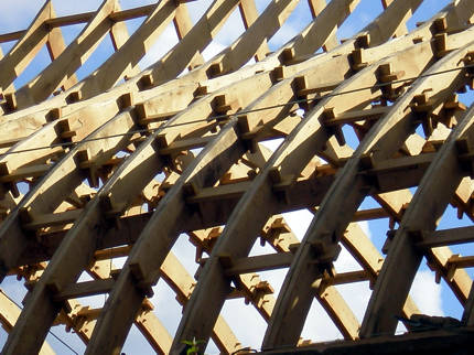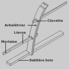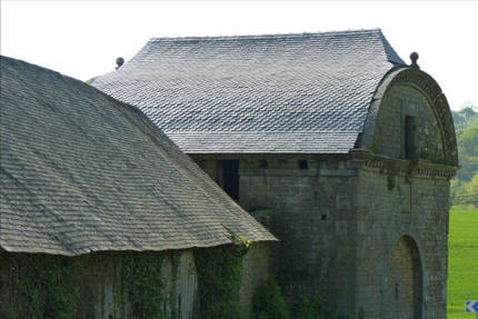 Le Portail Construit en 1657, cet édifice servait de portail à l’entrée de la cour. Outre la construction en pierres de taille bien appareillées, les embrasures de tir au rez-de-chaussée et à l’étage ainsi qu’une corniche à modillons, il est remarquable par sa charpente dite « à la Delorme ». Né à Lyon entre 1510 et 1515, Philibert Delorme est mort à Paris en 1570. De 1533 à 1536, il alla étudier les monuments de l'antiquité à Rome, puis, en 1548, il devient l’architecte du Roy et inspecteur des bâtiments royaux. C’est vers 1550 qu’il inventa la charpente dite "à petits bois". Il a écrit un traité sur l'art de la construction en neuf livres. Des chapitres ont été publiés ultérieurement sous le titre "Nouvelles inventions pour bien bastir et a petits fraiz," trouvées n'aguère par Philibert de L'Orme, Lyonnois, Architecte, Conseiller & Aulmonier ordinaire du feu Roy Henry, & Abbé de St Eloy les Noyon". La charpente « à la Delorme » se compose de simples arbalétriers courbes constitués par des planches mises de champ dont les joints alternent et qui sont serrées l'une contre l'autre par des clés en bois et des chevilles. Posées sur des liernes faites de planches qui traversent les arbalétriers et parfois également les enserrent, ces clés entrent à force dans deux mortaises creusées de part et d'autre de chacun de ces arbalétriers. Ce procédé de construction présente l'avantage de mettre en œuvre des éléments de petite dimension : la longueur moyenne des planches est de 1,30 m. Gervais Barré |