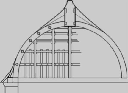The Gatehouse Built in1657, this building served as the entrance gate of the courtyard. In addition to being constructed in well matched stone, the shooting-slit windows on the ground floor and first floor and a cornice with corbels, it is remarkable for its frame structure by the carpenter known as "à la Delorme." Born in Lyon between 1510 and1515, Philibert Delorme died in Paris in 1570.From1533 to 1536, he went to study the monuments of antiquity in Rome, then in 1548 he became the architect of the king and royal building inspector. It was around 1550 he invented the structure known as "of little woods". He wrote a treatise on the art of construction in nine books. Chapters were published later under the title "New inventions for many small basti and Fraizer, n'aguère" found by Philibert de L'Orme, Lyonnais, Architect, Consultant & Au lmonier Roy Henry ordinary fire, and the Abbot of St Eloy Noyon". The structure"à la Delorme" consists of simple curved rafters of planks madeof alternating grain whose joints are held tight against each other with wooden keys and pegs. Placed onsupporting plates made of boards that cross the rafters and sometimes also completely covering them, the keys force together the two mortises carved on both sides of each of the rafters. This construction method has the advantage of using elements with small dimensions: the average length of the boards is 1.30m. GervaisBarré |