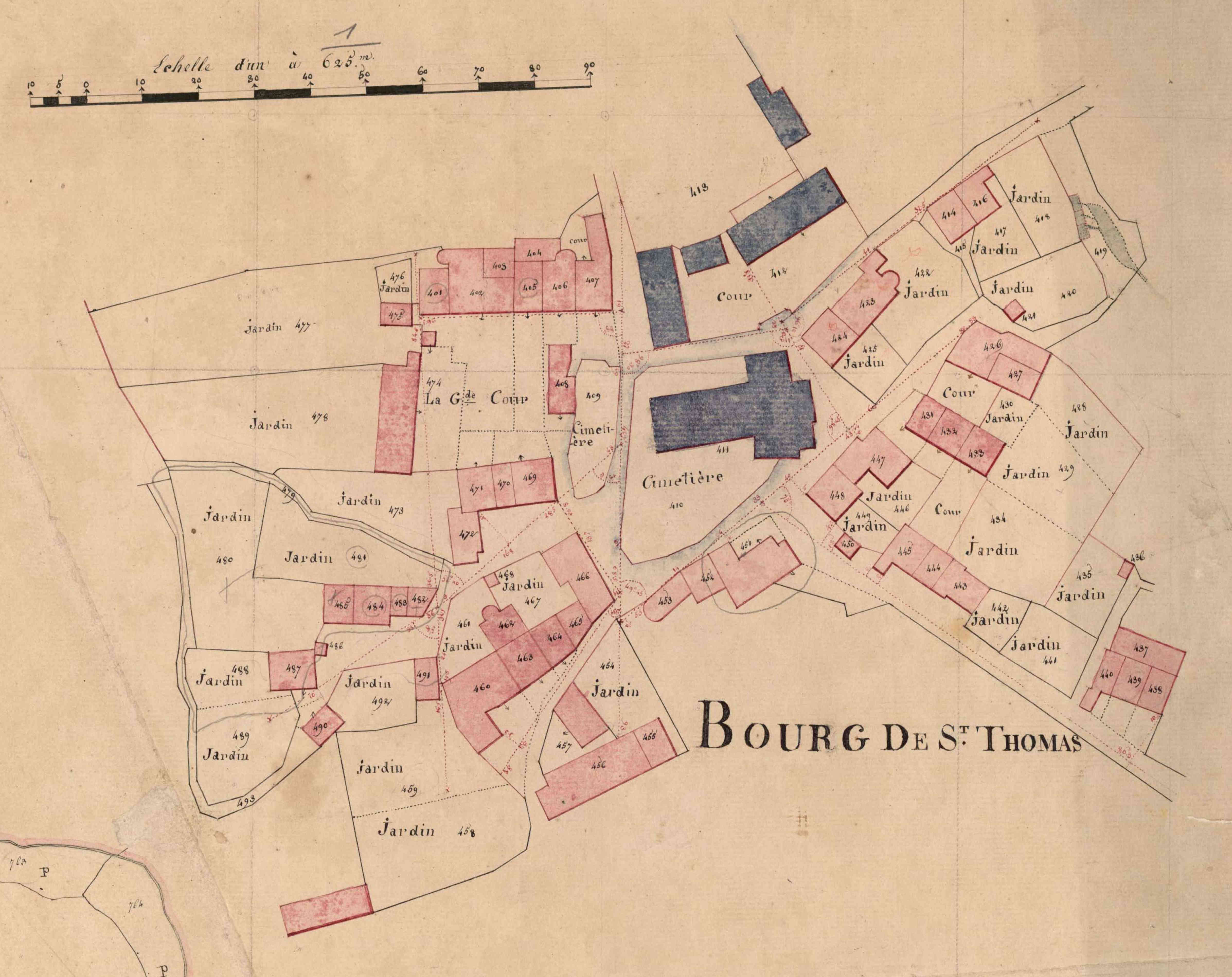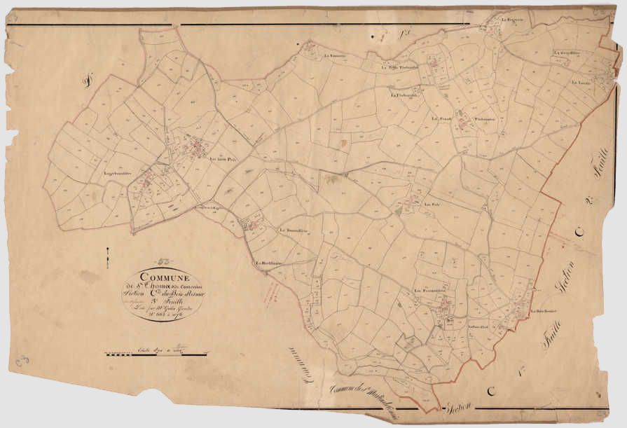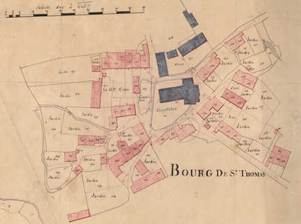 Plans numérisés du Cadastre du XIXe siècle. Le cadastre, commencé sous le Premier Empire (d'où le qualificatif de «napoléonien» qu'on lui donne parfois), s'est poursuivi en Mayenne pendant toute la première moitié du XIXe siècle. L'ensemble comprend plusieurs milliers de plans, reproduits en couleurs. On trouve en général pour chaque commune un tableau d'assemblage (« T.A. »), qui permet d'avoir une vue d'ensemble du territoire de la commune, et une série de plans détaillés par sections. Cliquez sur uneimage pour l'agrandir |