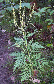 Ragweed Allergies caused by ragweed occur towards mid-August and may last until October. The diagnosis is therefore fairly easy to make in areas where the plant is present and in areas where the wind can carry pollen (up to 100 km radius!). Well established in the Rhone-Alpes, 12% of the population is allergic, causing huge expenditure for the public health authorities. Its low nutritional demands, good drought tolerance and hardiness help it quickly colonise both cultivated and uncultivated areas. The increase in isolated incidents, in areas not naturally invaded by ragweed, is often explained by the presence of ragweed seeds in bags of seed (sunflowers) or birdseed. In 2009 its existence was confirmed in Sarthe, 10 km from our departmental boundaries. |
