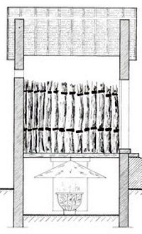 Hemp : Then and Now Origin Originally from Central Asia, hemp "Cannabis sativa", not to be confused with the Indian hemp "Cannabis indica", has been grown for over 8000 years for its textile fibre, its seed oil and its therapeutic properties. The earliest archaeo-logical evidence of its use by man was found in China, one of the centres of the Neolithic agricultural revolution. In the 18th century, hemp was used to make fabrics for the home, clothing and also in the manufacture of bank notes, bible paper, cigarette paper and ropes. Sailing ships were an important market: with their sails and rope - a sailing vessel carried several tons of hemp ropes. The disappearance of the sailing ships and the appearance of cotton and synthetic textiles made hemp a victim of progress. The ancient culture Seeds were sown in late May The male and female stalks were mixed and reached a height of two meters. The harvest was in September. The stalks were pulled up by hand, bundled into packages of 20 to 30 strands by the women and stacked in the field where a first drying removed the soil from the roots Retting : hemp packets were plunged into special water pools (routoirs, douets) of 15 m2 with a mettalled bottom and sides. Large stones kept hemp completely submerged. This allowed the wood fibres to separate (the boon). The immersion lasted from fifteen days to one month and then the packets were put out to dry on a meadow or along a hedge. There was a serious downside to retting - the water used affected the health of animals and fish. Hemp also gives off a foul odor and the men had to work in the water to put in or remove the hemp and stones. Drying oven : The Hemp oven was a two-story round tower (sometimes square) located against an embankment to allow access to two walk-in doors. The ground floor was the place where the coal was burned. Combustion produced heat without flames and smoke. The first floor was the drying chamber. Packets of hemp "beat" were arranged in this room. To dry one "tournée" would have taken a day and night. The ovens operated day and night during the season. Each oven was used by 5 to 10 farms. These hemp ovens stopped being used after the first world war, the hemp then being dried in bread ovens. Grinding by hand (scutching) : The next phase was the grinding or scutching which aimed to separate the bark containing the wood fiber or boon. It was important to break the stem without damaging the fiber exterior. They used a "crush" or "bray" consisting of a manually operated hinged wooden jaw. The boon broke into small pieces while the fiber bundle was retained. This tiring work was often done during the winter evenings. Carding : The crushed hemp was cleaned by hand with a comb card. The fibres were then readu for spinning. Spinning : The carded fibres were then spun at the spinning wheel. Weaving : The hemp yarn was woven as a craft to produce coarse but strong fabrics (sheets, towels, bags, shirts, ...) Rope : The carded tow was taken to the ropemaker who created various ropes (ropes, halters, liures, etc ...) Source : « Un brin de causette … le chanvre » revue n°1 du syndicat d'initiative de Villaines et ses environs (1981). WikipédiaThe current status of the hemp industry The different uses of hemp The "classic" transforming of the hemp stems is not by mechanical grinding or shelling. The operation includes beating and grinding to extract the stem fibers (tows), which make up 30-35% of the total mass of the stalk and the other the boon which represents 50-55% of the mass of the stem.The fibers of the stem Hemp fiber is these days used in other sectors. Depending on how much boon is left remaining in the stem, the length or colour of the fibers, the uses will be different : The mediocre quality fibers called "papetières" are used for manufacturing pulp for specialty papers. They are valued for for high quality paper (extra fine paper, medical papers, cigarette paper, bank note ...) The best quality fibres, called "techniques" are used in the manufacture of hemp wool insulation and in the plastics industry. It is also in "eco-building" because it offers excellellent properties of thermal insulation and sound insulation and acts as a repellent against rodents and small pests. The boon This is the inside of the stem. It is used in various forms: - Building materials : mixed with lime, the boon is prized for its lightness and insulating characteristics. For use in construction, the boon comes in two forms : loose in bulk where the hemp and lime are mixed on site or alternatively the hemp and lime are made into blocks and built up the same way as concrete blocks. - Mulching of the soil : the boon has interesting absorption qualities because it can absorb up to four times its weight in water. Once spread on soil, irrigation water and rain water is stored by the boon and returned to the plants as and when it is needed. - Animal bedding : thanks to its power of absorption and lightness, the boon is used in bedding both for both domestic animals (cats, rabbits ..) and for horses. The hemp seed The seeds of the hemp plant are a valuable product. The seeds are used in different forms : - Aviaries and recreational fishing. - Food products : There are more and more opportunities for hemp in food : pasta, flour, sugar, beer, oil ... The oil, which is useable cold, is used as a seasoning. - Cosmetics : Many cosmetics are made from oil extracted from hemp seed. Research has shown that hemp seed oil helps to strengthen the body and prevents its degradation. This is thanks to essential fatty acids easily assimilated by the cells of the skin. It can be used as massage oil, in lip balms, soaps and body lotions. - Another market exists but is less common - paint and varnish made from hemp. Hemp production in the Pays de Loire In 1988, in the Pays de Loire, hemp production was estimated at 1600 ha. (Source FNPC). It is estimated that production in Sarthe was approximately 1500 ha and in Maye