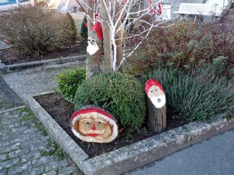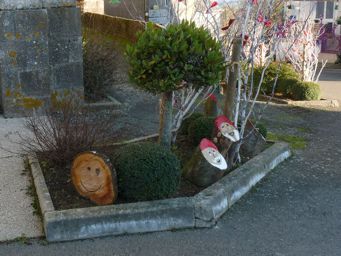 The partnership of The Friends of the Vaudelle and the Comité des Fêtes continues this year with a contribution to the Christmas decor-ations in the village. The workshops where the decorations were made in October and December revealed many artistic talents in a convivial atmosphere. The Scarecrow Festival in the summer, with contributions open to everybody, is scheduled again for 2015. The theme will be announced soon! Scroll down to see our work. Click on any image to enlarge it. |