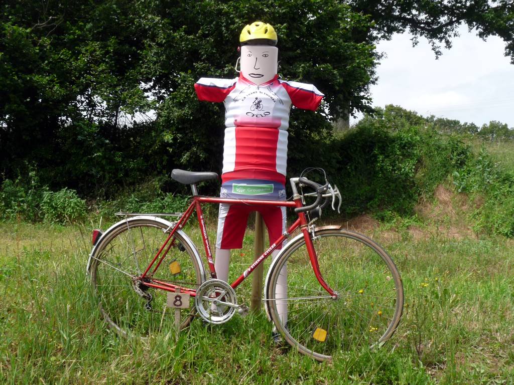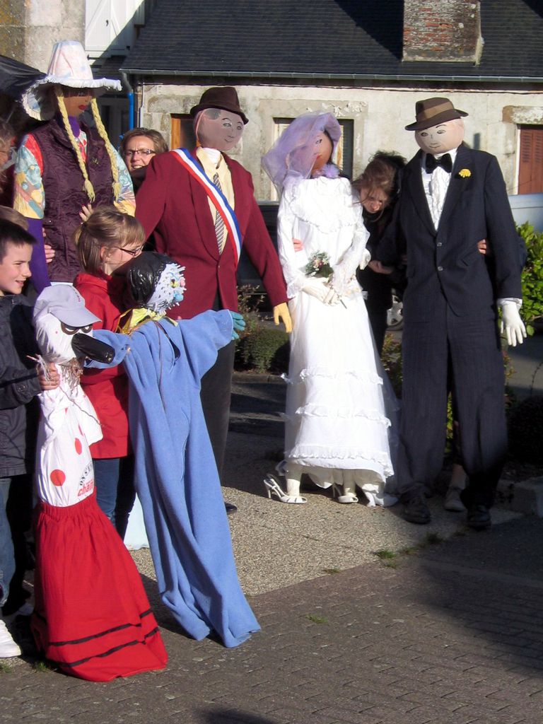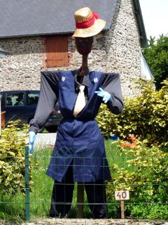 Plus de cinquante épouvantails, et leurs 250 créateurs, se sont retrouvés la semaine dernière devant l'église pour mettre en place un parcours à découvrir tout l'été. Embouteillage au centre bourg assuré! Le comité des fétes et l'association Pour l'Environnement et le Patrimoine sont à l'origine de ce projet qui a séduit particuliers, clubs sportifs, associations et les écoliers. Tous ont crée des sujets amusants et plein d'humour : 'Maire et mariés', 'jardiniers et footballeur' et autres personnages imaginaires à découvrir sur un parcours fléché de presque trois kilomètres, en boucle du centre bourg vers la rue du Chéne, direction la Chapelle du Chéne, puis à gauche vers 'Le Portail' passant devant le château, le pont romain, puis à gauche vers le 'Pré Barbin', 'Roisneau', retour vers le centre. Samedi dernier, l'association pour l'environnement et le patrimoine a marqué le lancement du parcours par une balade partie du lieu-dit 'La petite Touche', route d'Izé, avec au retour, un concours de pétanque suivi d' un repas aux saveurs de l'Europe de l'Est. Une commune ou ne l'on ne s'ennuie jamais!